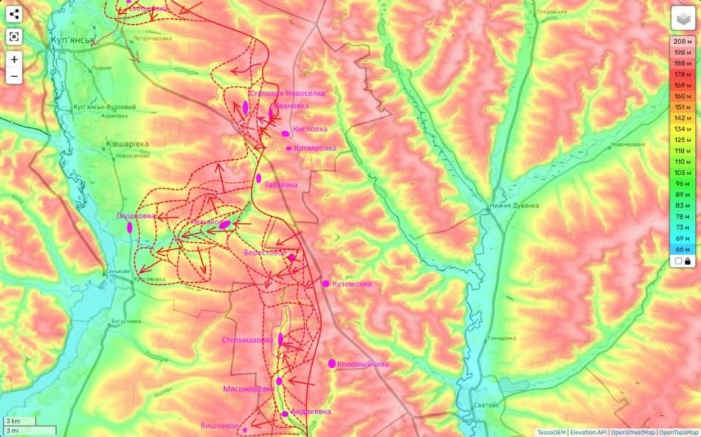 Командование ВСУ всерьез опасается развития нашего здесь успеха. Который в случае его осуществления грозит выходом в тыл укрепрайонам противника восточнее (на высотах), перерезанием трассы Купянск-Северодонецк и прорывом северного участка внешнего кольца обороны Купянска.