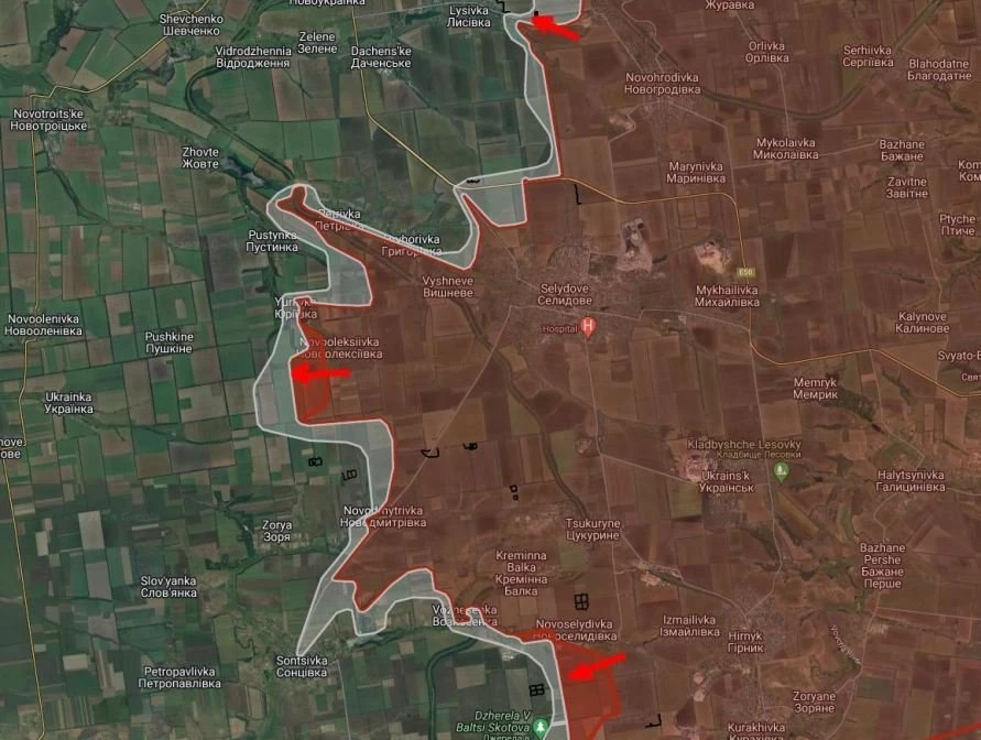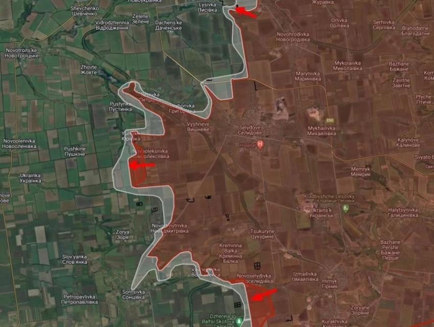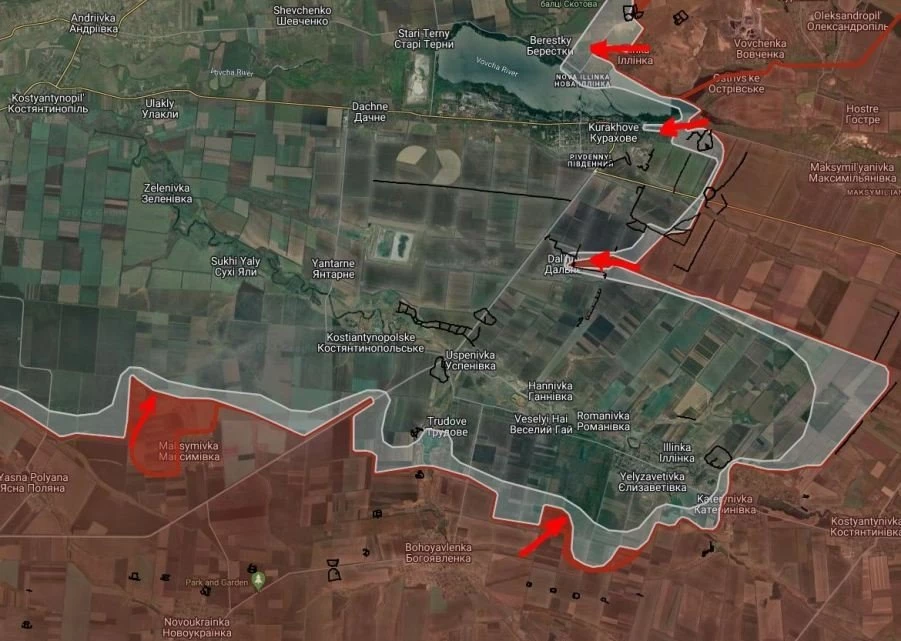 На Покровском участке ВС РФ выбили ВСУ из Новой Ильинки, стараются срезать «карман» к северу от Курахово в районе Берестки-Новая Ильинка. После этого наши получат возможность поджать гарнизон ВСУ в Старых Тернах. Севернее армия России бьется в Солнцевке и прорывается от ж/д южнее Вознесенки. Западнее Селидово МО подтвердило освобождение Григоровки, а ВС РФ уже продолжают наступление вдоль ж/д через Пустынку, Юрьевку, Петровку на Покровск. По последним данным, наши войска атакуют позиции ВСУ на окраинах Желтого.