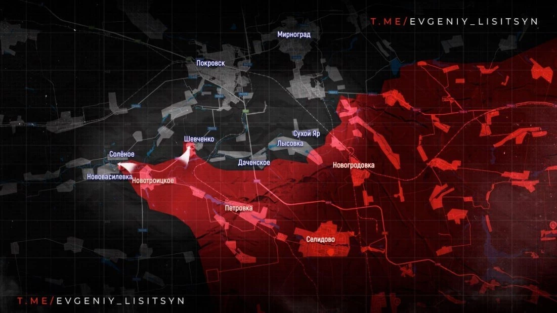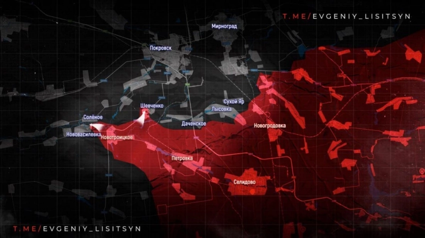 На Покровском направлении бои идут в районе села Шевченко, расположенного южнее города, а также западнее и северо-западнее населенного пункта Заря. Активные действия ведутся в районе Новооленовки и Украинки. Российские подразделения выравнивают линию фронта, ликвидируя "карманы" между освобожденными селами.