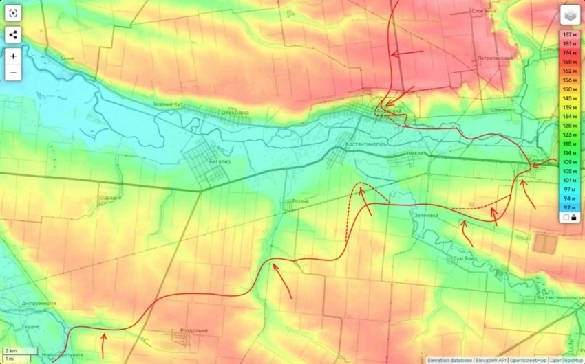 Причём, с каждым днем (с учетом перегруппировки сюда освободившихся после освобождения Большой Новоселки частей) нарастает угроза нашего выхода в район н.п. Богатырь и Комар. Что станет для данного участка фронта противника настоящей катастрофой. И занятие накануне нами большого укрепрайона западнее Раздольного (который мешал здесь нашим частям около месяца) во многом развязывает частям группировки "Восток" здесь руки.