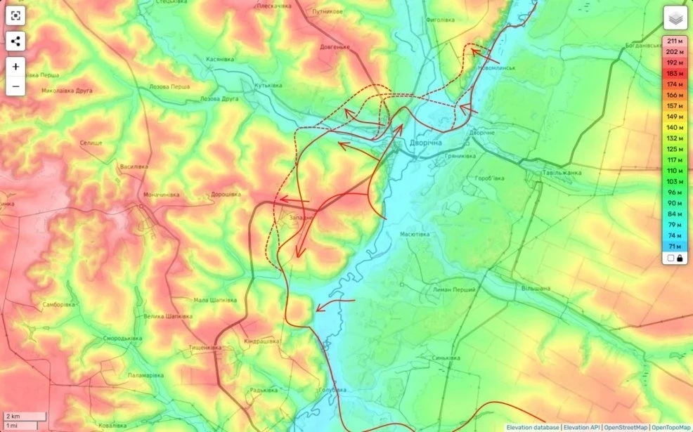 Российские войска создали довольно крупный плацдарм в районе пгт Двуречная на правом берегу реки Оскол и постоянно расширяют его, несмотря на попытки ВСУ помешать этому. На данный момент украинские войска уже не могут уничтожить плацдарм, потому что у них нет для этого сил и средств. Россияне, в свою очередь, получили возможность атаковать как в сторону Купянска, так и в сторону Изюма с дальнейшим продвижением на Харьков, пишет "Военное обозрение".
