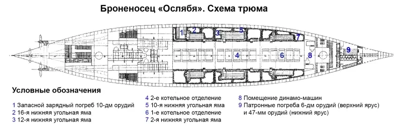 Схема №6. Броненосец «Ослябя». Трюм