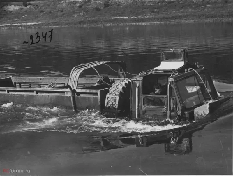 Если рассматривать колесную технику Российской Армии, то здесь, наоборот, нет плавающих машин. И это второй парадокс, хотя и достаточно объяснимый. Легкая бронетехника типа БМП, БТР и БМД в ходе боевых действий должна была оперативно форсировать водные преграды в местах, где их противник не ждал. Подразделения захватывали плацдарм и создавали условия для наведения понтонного моста. Вот по нему шли танки, артиллерия и колесная техника, которая плавать не умела. В крайнем случае, переброску легкой сухопутной техники осуществляли гусеничные плавающие транспортеры ПТС-2. В этой концепции не было места КамАЗам и Уралам с водометными движителями. Хотя так было не всегда.