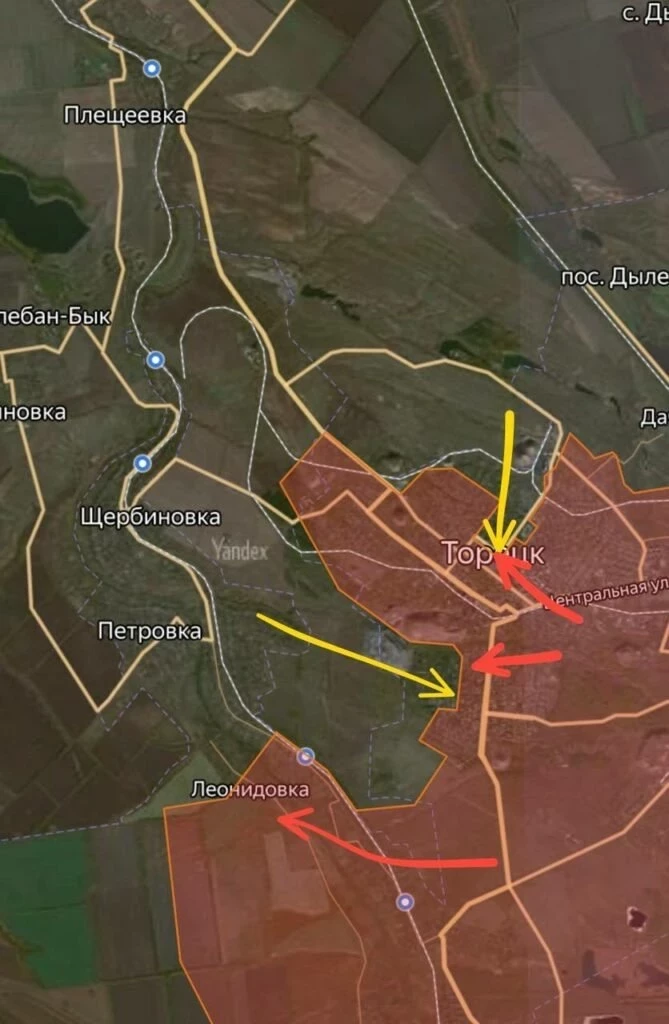 В Дзержинск (Торецк) ВСУ продолжают забрасывать личный состав и технику, бои за агломерацию продолжаются. Севернее Воздвиженки идут бои в районе Тарасовки: ВСУ возвели протяжённые опорные пункты.