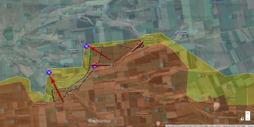 На Запорожском фронте идут тяжёлые бои в районе Степовое - Щербаки. Минобороны России сообщило об освобождении Малых Щербаков, с мест пишут о том, что наши подразделения завязали бои на окраине Лобкового.