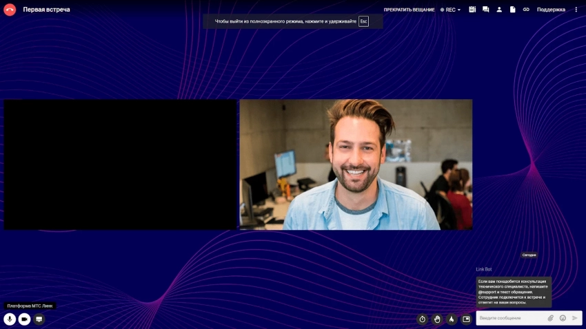 «МТС Линк» (бывший Webinar Meetings) начинал как платформа для вебинаров, но со временем превратился в полноценный корпоративный инструмент. Бесплатная версия ограничивает встречи 60 минутами.