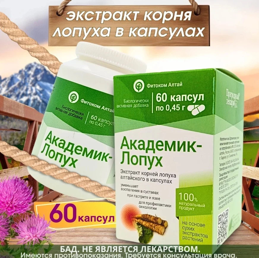 Академик Лопух, экстракт корня лопуха в капсулах, бад, 60 капс, Фитоком Алтай