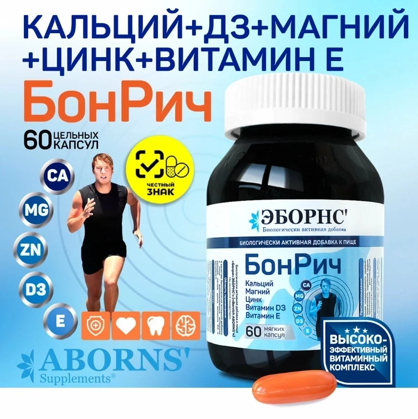 BonRich Calcium, Magnesium Zinc + Vitamin D3, Vitamin Е — это топ БАД для суставов и связок, особенно если нужен комплексный подход: кальций укрепляет кости, магний снимает судороги, цинк запускает регенерацию, а витамины D3 и Е улучшают усвоение и защищают от разрушения тканей. Удобный формат цельной капсулы, сбалансированная дозировка, рабочий состав — всё это делает добавку подходящей и для спортсменов, и для тех, кто просто устал от хруста в коленях.