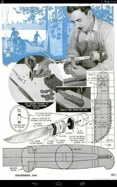 Наборная рукоятка из пластин кожи и пластика. Впрочем, я бы предпочел наборную рукоятку из березовой коры. Даже в самый сильный мороз она не холодит руки!