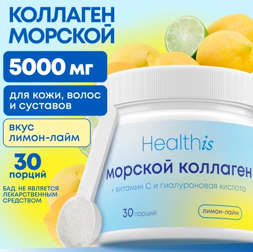 Морской коллаген в порошке от HealthIs — это настоящий топ бад коллаген для тех, кто хочет комплексно заботиться о себе. Благодаря высокой концентрации аминокислот, он работает сразу на несколько фронтов: укрепляет суставы и связки, делает кожу упругой и увлажнённой, а волосы и ногти — крепкими и здоровыми. Витамин С и гиалуроновая кислота усиливают эффект и повышают усвояемость. Приятный вкус, продуманный состав и сертифицированное качество делают этот БАД достойным местом в твоей системе self-care.