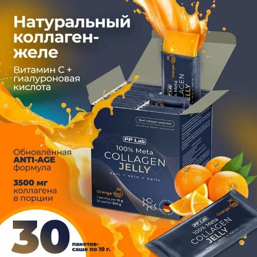 PP Lab Collagen — это идеальный способ поддерживать здоровье кожи, суставов, волос и ногтей с наслаждением. Вдохновленная инновационной формулой, эта пищевая добавка включает гидролизованный коллаген, гиалуроновую кислоту и витамины, предлагая комплексный подход к омоложению. Удобные порционные саше с ярким вкусом апельсина превращают заботу о себе в ежедневный ритуал. Срок курса — 30 дней, что позволяет ощутить заметные улучшения в состоянии кожи и суставов.