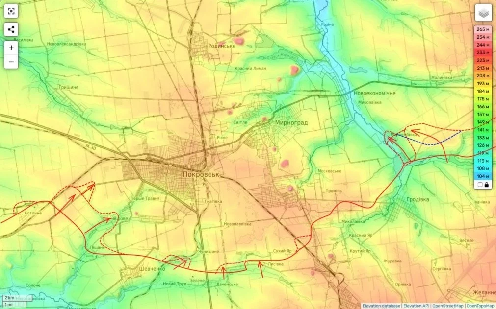 В целом мы видим, что части группировки «Центр» ведут наступление как на Покровскую агломерацию, так и со стороны н.п. Удачное пытаются выйти на границы Денпропетровщины.