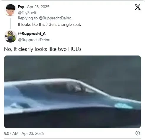 Последние кадры с J-36 на видео и связанные с ними изображения представлены в постах в социальных сетях, которые, как утверждается, были сняты в городе Чэнду. За самолёт отвечает Чэндуская авиастроительная корпорация, главный завод которой находится там же. Так что всё логично и не требует особой проверки. Как говаривал покойный сатирик Михаил Задорнов, файлы сошлись.