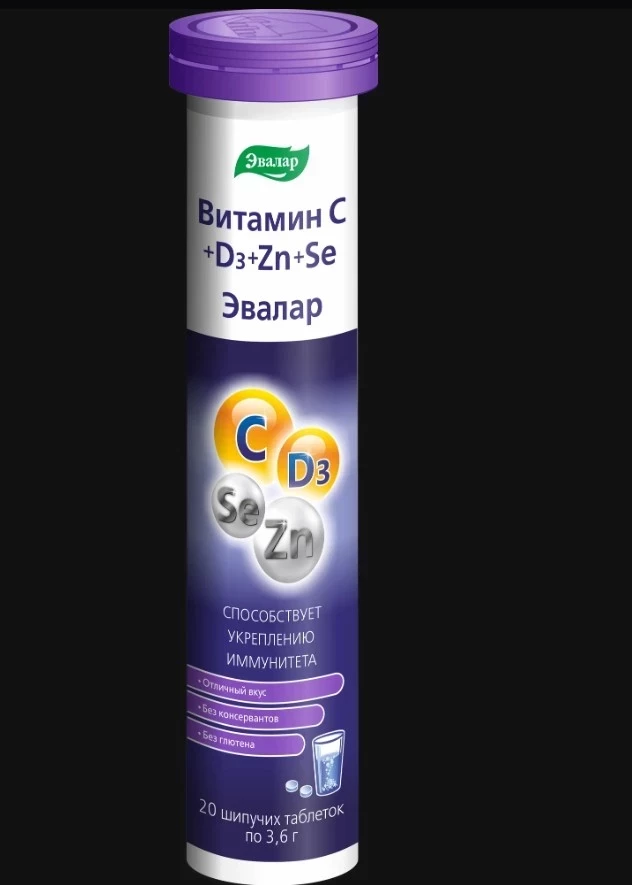 Витамин С+D+цинк+селен, 20 шипучих таблеток, Эвалар