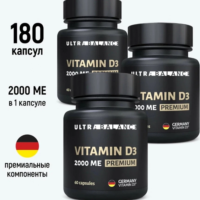 Vitamin D3 2000 ME Premium от UltraBalance — это продуманный до мелочей источник солнца в мягкой капсуле. Созданный на базе немецкого холекальциферола и растворённый в оливковом масле Extra Virgin, он отличается высокой биодоступностью и стабильной дозировкой. Препарат сертифицирован по стандартам GMP и ISO 22000, укрепляет иммунитет, нормализует настроение, поддерживает здоровье костей и мышц, регулирует уровень кальция и фосфора. Это серьёзный игрок среди топ БАДов для здоровья — без вкуса, без запаха, с ощутимым результатом.