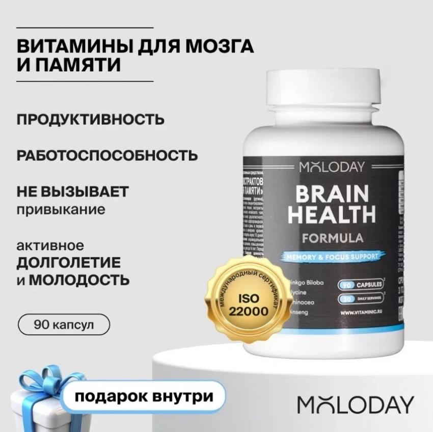 Комплекс Brain Health от MOLODAY — это не просто витамины, а умный апгрейд для мозга. Сочетание глицина, гинкго билоба, женьшеня и эхинацеи работает как слаженная команда: снимает умственное напряжение, усиливает концентрацию и поддерживает когнитивную активность. Если вы в поиске БАДов, которые реально влияют на производительность и ясность мышления, этот комплекс — отличный кандидат. Особенно для тех, кто хочет держать мозг в тонусе без кофеина и перегруза.