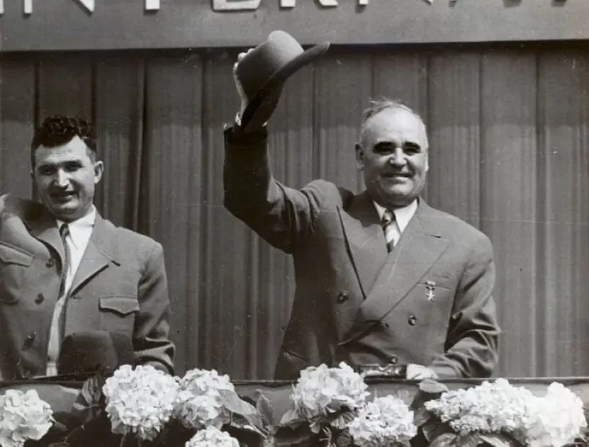 Румынские лидеры — Георгиу-Деж и Чаушеску — провожают советские войска