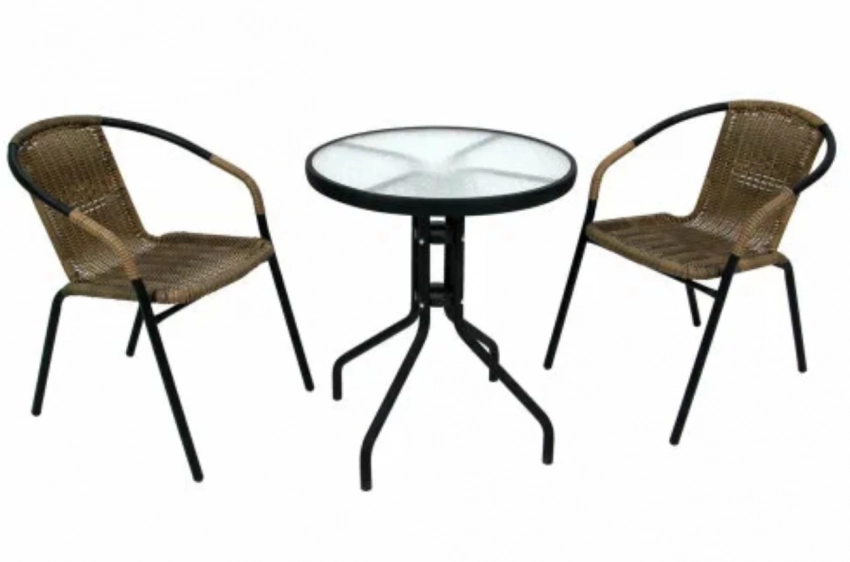 Если вы не знаете, как выбрать мебель для балкона, которая будет и стильной, и удобной, и не бояться переменчивой погоды — присмотритесь к комплекту Garden Story «Марсель Мини». В набор входят два кресла и круглый стол диаметром 60 см — идеальное решение для компактного балкона. Металлический каркас устойчив и надёжен, а плетёный жёлто-коричневый ротанг придаёт комплекту тёплый и уютный вид. Подходит для утреннего кофе, вечерних разговоров и просто как эффектный акцент в уличном интерьере.