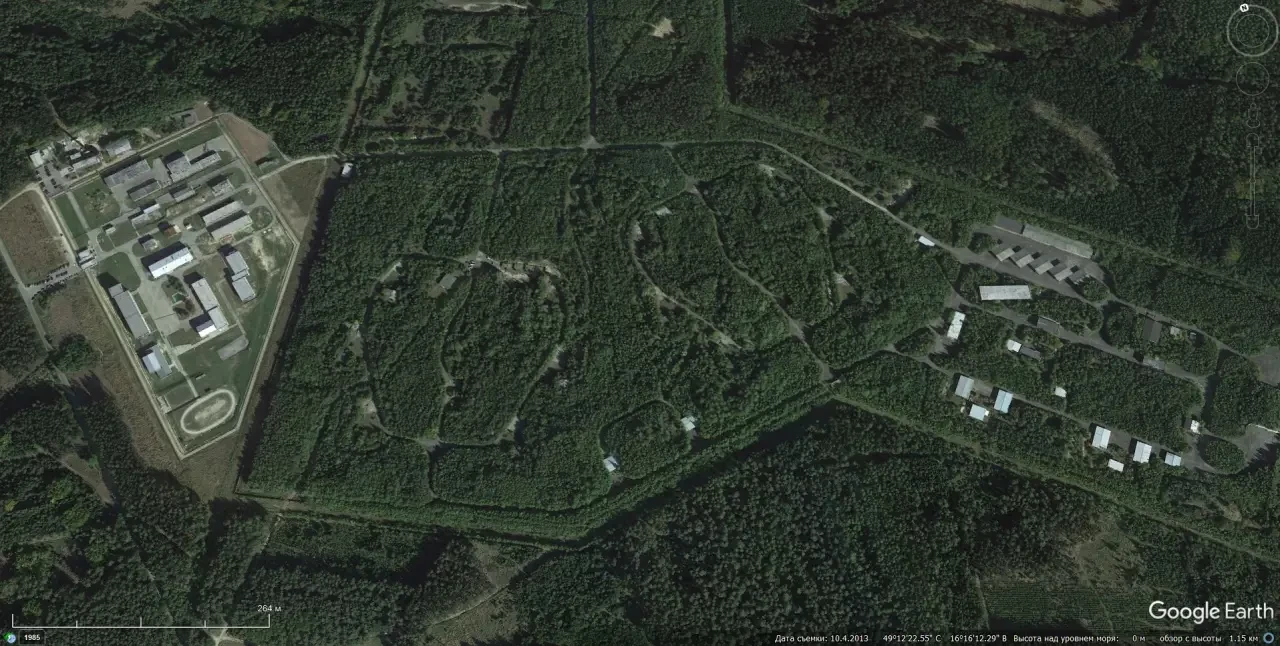 Спутниковый снимок Google Earth: позиция ЗРК С-200ВЭ в окрестностях населённого пункта Добржиш