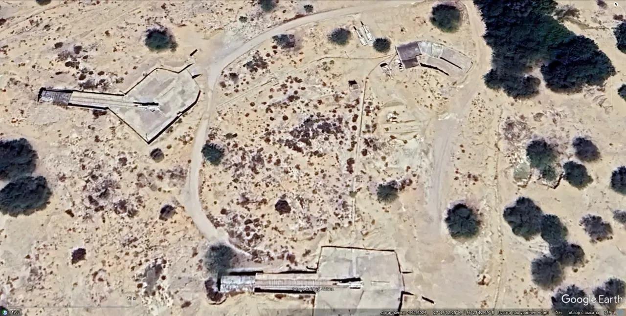 Спутниковый снимок Google Earth: позиция ЗРК С-200ВЭ в окрестностях авиабазы Бендер-Аббас.