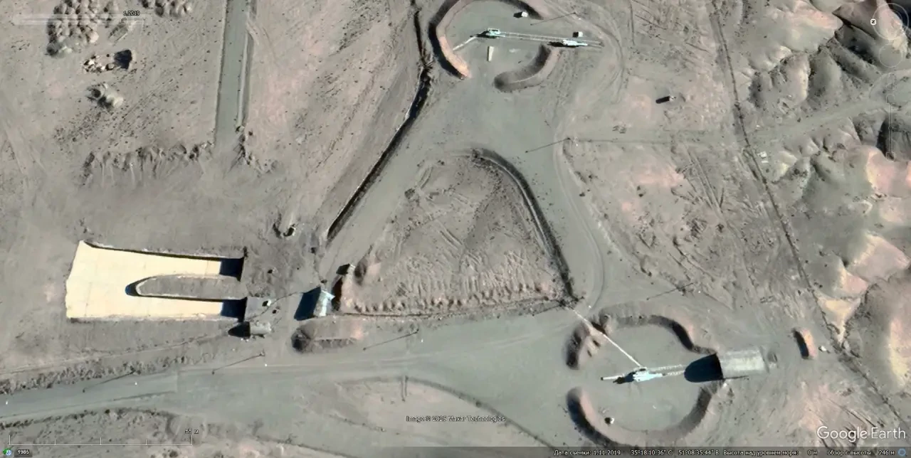 Спутниковый снимок Google Earth: позиция ЗРК С-200ВЭ на южной окраине Тегерана