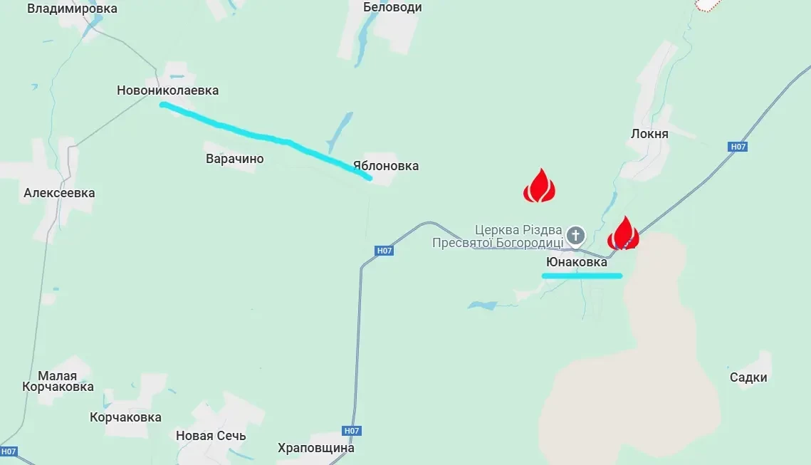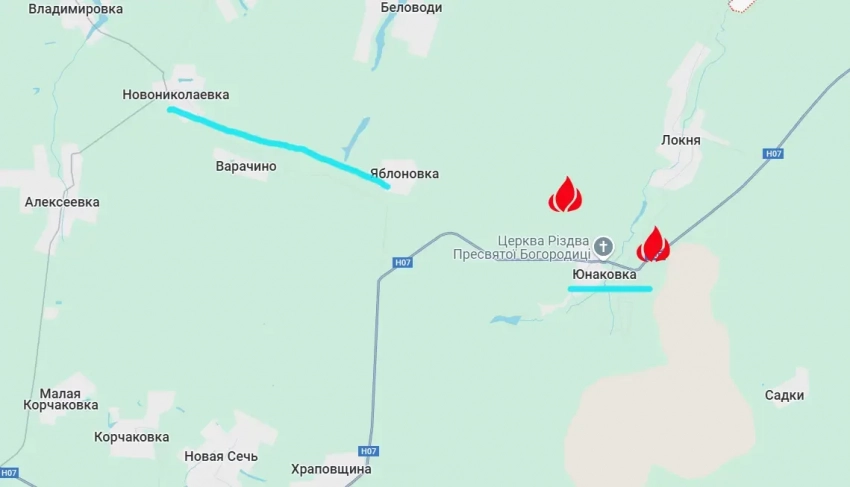 Украинский военный эксперт по фамилии Машовец пишет о том, что российские войска нарастили количество атак, стараясь выйти на рубеж Новониколаевка – Яблоновка. При таком выходе ВС РФ смогут наладить плотный огневой и частичный физический контроль над автомобильной дорогой к Сумам. Одновременно с этим может быть отрезана от снабжения группировка ВСУ в районе Юнаковки и Садков.