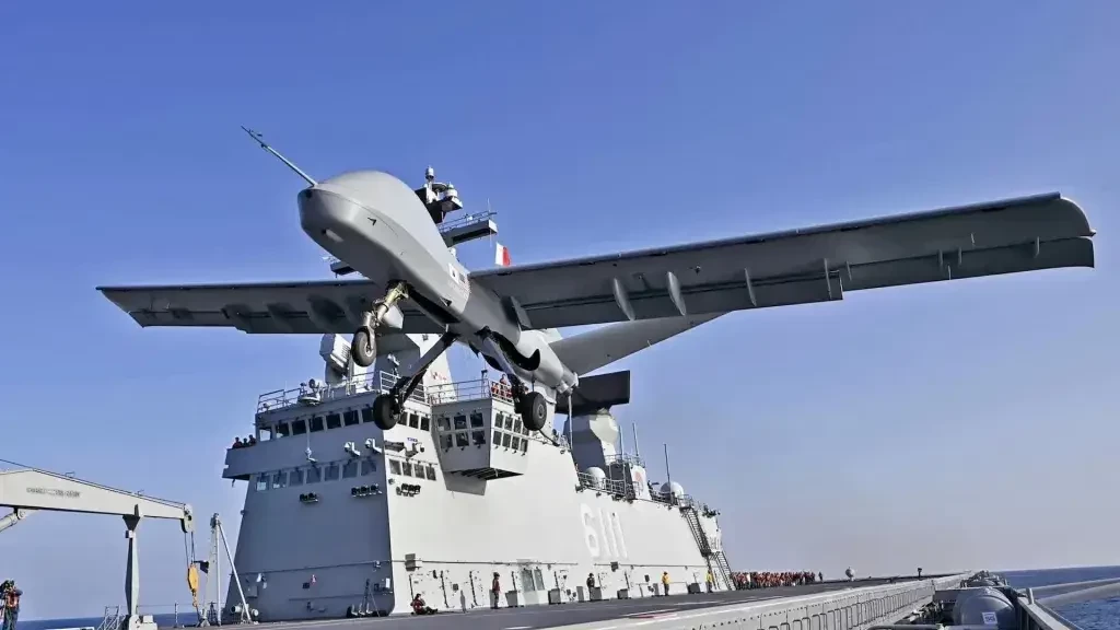 Что касается MQ-9, то Reaper наземного базирования уже состоит на вооружении Франции, но его производитель, компания General Atomics Aeronautical Systems, активно ищет способы адаптации дронов серии MQ-9 для использования на авианосцах. Компания разработала комплект крыльев, который превращает MQ-9B в большой палубный дрон, размещаемый на корабле и способный взлетать с укороченных ВПП. Она также продемонстрировала свой Mojave, специально разработанный для выполнения коротких взлётов и посадок, в том числе с различных авианосцев.