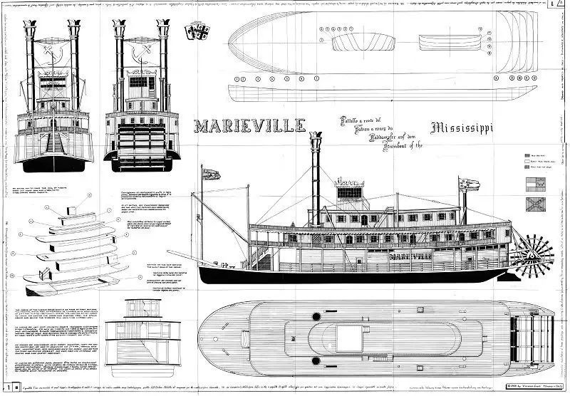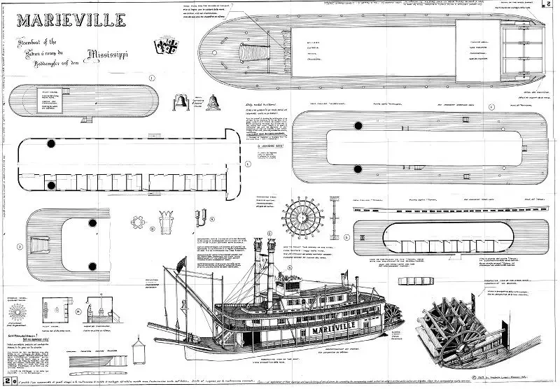 Основные проекции модели парохода «Мариевилль»