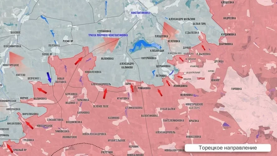 На Покровском направлении российские войска вышли на западную границу ДНР и развивают наступление в Днепропетровской области северо-западнее Орехово между реками Волчья и Солёная к Новопавловке. Возможное продвижение бойцов российской армии вглубь Днепропетровской области несёт риски обрушения логистики ВСУ на всём южном фронте.