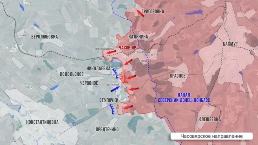 В Часовом Яре наши бойцы тяжело продвигаются в центральной части, а также на севере – в районе карьеров, и на юге – в районе Ступочек. Враг готовится к обороне в Предтечино, что находится в трёх километрах от Константиновки.