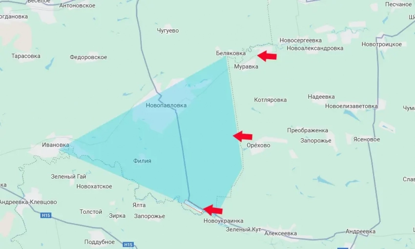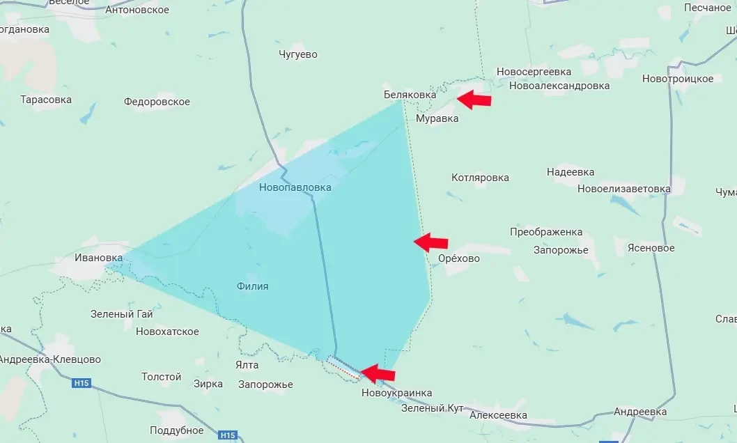 В любом случае над противником нависает угроза перерезания логистики в Новопавловке с перспективой срезания Новопавловского выступа. Он обозначен на карте голубым цветом. В свою очередь это может позволить как продвигаться вглубь Днепропетровщины, так и организовать охват Покровска по дуге большего радиуса.
