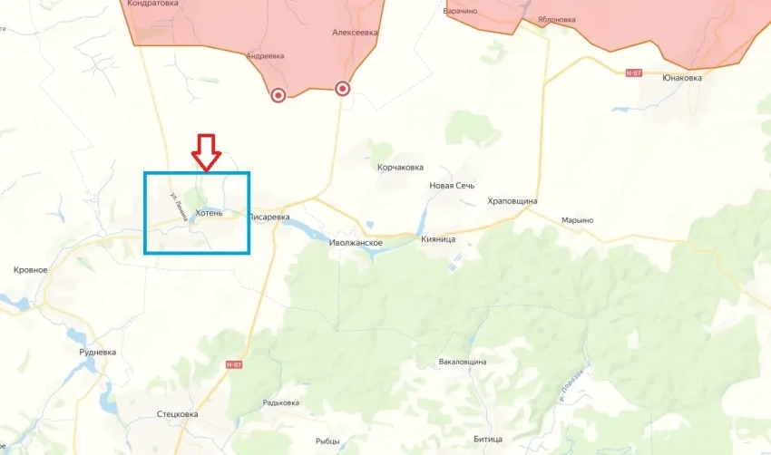 Согласно оперативным данным, поступающим с севера Сумской области, под контроль наступающих из Кондратовки подразделений ВС РФ перешли все опорные пункты противника в направлении села Хотень.