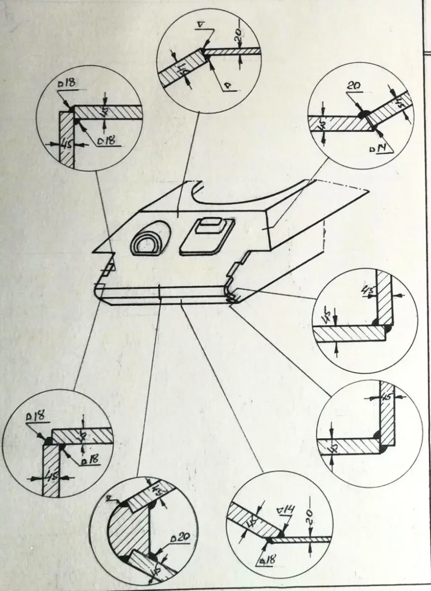 8. Соединение днища корпуса с бортовыми кормовыми деталями показывают хорошую прочность и живучесть при соединении в четверть, в шип, в распор и нахлестку, сваренных качественными электродами.