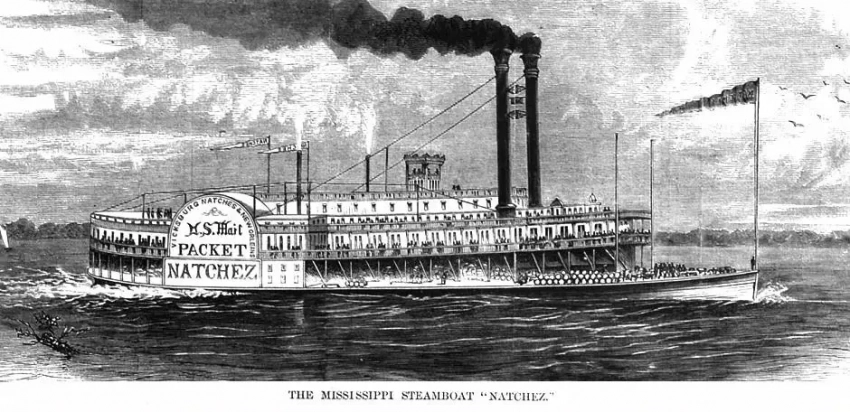 А это его постоянный конкурент, пароход «Натчез». Обе гравюры относятся к 1870 году