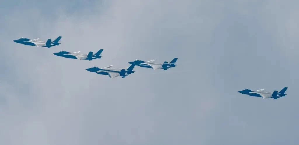 НОАК проводит репетиции к военному параду, запланированному на 3 сентября и посвящённому 80-летию победы КНР во Второй мировой войне. На них была замечена группа истребителей, состоящая из базовых J-20, улучшенных J-20A и двухместного J-20S, летевших общим строем.