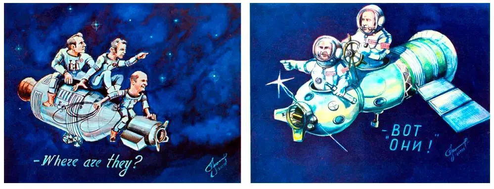 Карикатура Алексея Леонова на момент стыковки кораблей