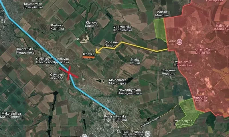 Перерезание этой трассы фактически означает окружение группировки ВСУ в Константиновке, поскольку данная дорога является последней, по которой идет более-менее стабильное снабжение и ротация, хотя она находится под огневым воздействием ВС РФ. Даже взятие трассы под огневой контроль, чего пока не случилось, значительно осложняет ситуацию для противника, а физическое перерезание обрывает связь с Краматорско-Славянской агломерацией. Конечно, противник будет предпринимать попытки снабжения и переброски войск через поля, но и этот вариант обречен на провал.