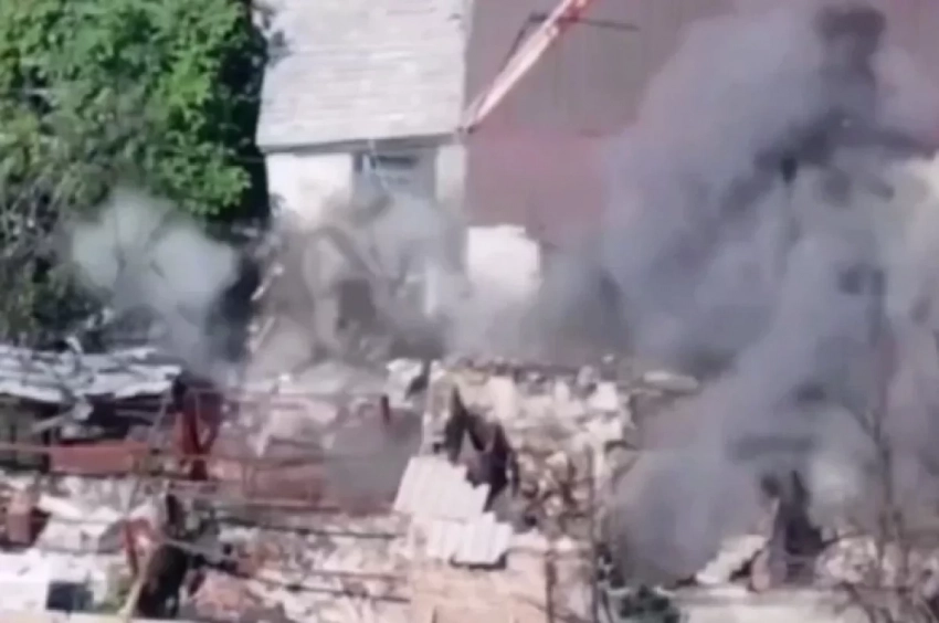 Кадры уничтожения дронами одного из укрытий боевиков ВСУ на территории Красноармейска опубликовал Telegram-канал «Работайте, братья!».