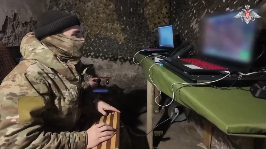 Расчёт БПЛА разведки работает со своими терминалами комплекса «Глаз/Гроза». Кадр из д/ф «Военное образование. С учётом боевого опыта»
