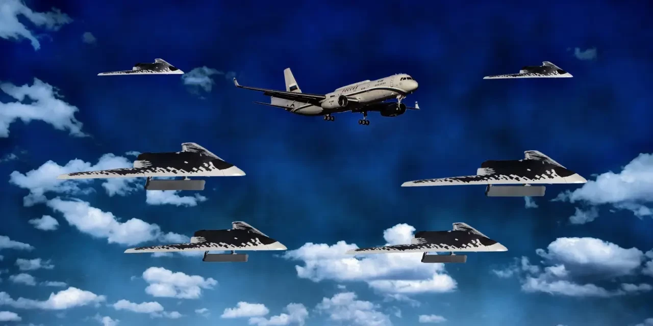 При этом машины, находящиеся в максимальной близости к атакуемому БПЛА, осуществляют постановку радиоэлектронных помех «со стороны». По открытым данным, именно такая тактика является наиболее эффективной для срыва захвата цели атакующими ракетами «воздух-воздух» или ЗУР противника, когда помехи ставятся не самим атакуемым самолётом, а другими машинами группы.