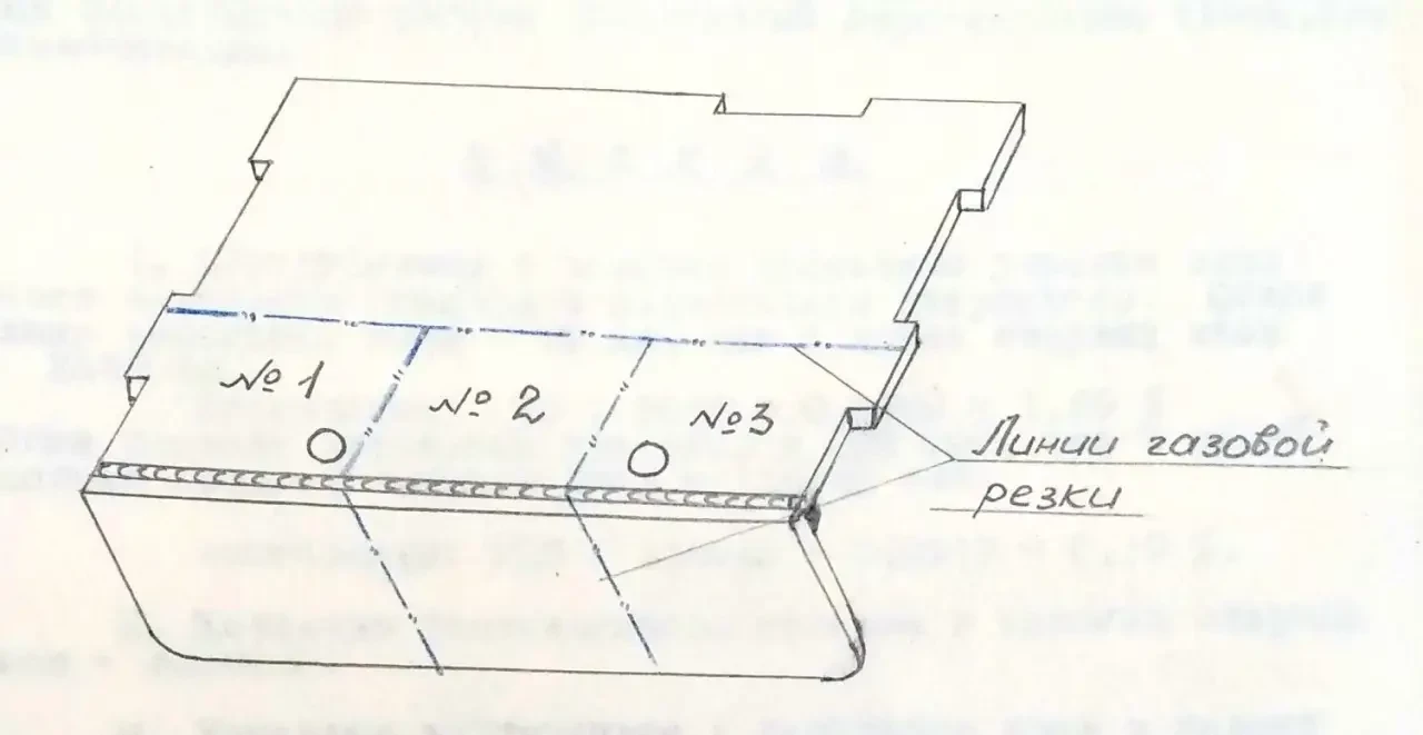 Испытанный бесшиповой узел НОС сварен 5 ноября 1958 года автосварщиком тов. Иматовым Э.А. автоматической сваркой под слоем флюса марки АН-22 сварочной проволокой диаметров 5 мм марки ЭИ-613.
