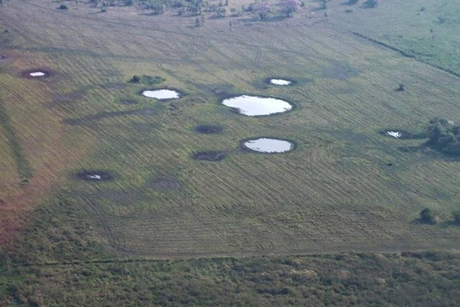 Народ Касарабе населял эту тропическую низменную саванну с 500 по 1400 год нашей эры, сталкиваясь с экстремальной погодой с интенсивными дождливыми и сухими сезонами. Они разработали сложную систему ландшафтной инженерии с обширными дренажными каналами и фермерскими прудами, чтобы преодолеть эти трудности.