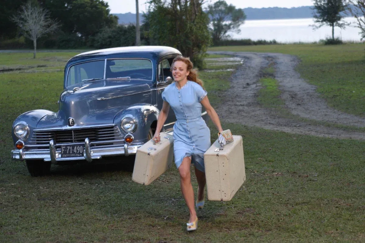 Рэйчел МакАдамс в фильме "Дневник памяти" (2004)/Фото: кадр из фильма/New Line CinemaРэйчел МакАдамс в фильме "Дневник памяти" (2004)/Фото: кадр из фильма/New Line CinemaРайан Гослинг и Рэйчел МакАдамс в фильме "Дневник памяти" (2004)/Фото: кадр из фильма/New Line CinemaРайан Гослинг и Рэйчел МакАдамс в фильме "Дневник памяти" (2004)/Фото: кадр из фильма/New Line CinemaВ фильме "Дневник памяти", одном из самых романтичных, героиня Рэйчел МакАдамс, Элли, одевалась модно по меркам 1940-х. Пожалуй, больше всего Элли запомнилась зрителям в голубом платье приталенного силуэта, когда она целовалась под дождём с любовью своей жизни Ноем (Райан Гослинг). Актёры не просто сыграли влюблённых, но и закрутили роман на съёмках, который продлился целых четыре года. Эта сцена стала культовой и даже получила награду MTV. А повторить образ Элли легко с помощью похожего голубого платья в модный цветочный принт Befree или Gate31.Хочется отметить ещё один наряд Элли, который она надела на свидание с Ноем, — красное мини-платье с геометричным принтом. Его можно заменить на более стильную версию — приталенное платье в клетку No. 21.