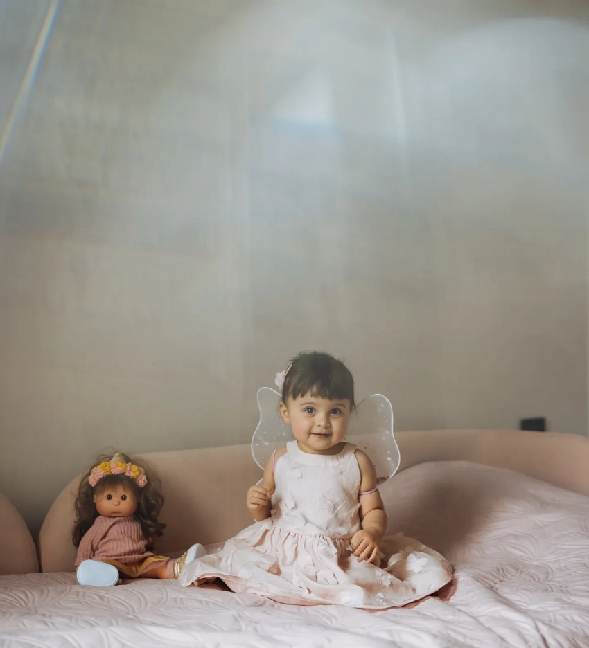 На новых снимках Самира позирует в розовом платье и с такого же цвета заколкой. Также Равшана добавила свой совместный снимок с дочерью и пару снимков девочки с её братом Гаспаром.