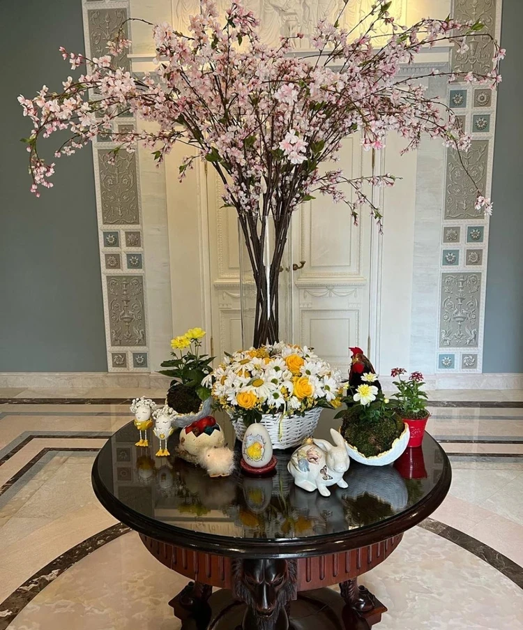 Знаменитости не только рассказывают о пасхальных традициях, но и охотно хвастают, какие у них куличи. Пятая жена Евгений Петросяна, она же его концертный директор, Татьяна Брухунова слывет стильной женщиной. У неё всё «по красоте» в её понимании. Не только в гардеробе, но на столе: и куличи, и крашеные яйца. Их фото, как и очередной «модный лук», Брухунова размещает в соцсетях. Ещё более живописные куличи приготовила актриса Евгения Крюкова. Как с картинки пасхальная атрибутика у Юдашкиных. Пасхальные яички и зайчики не дают забыть, что мы в доме художника.