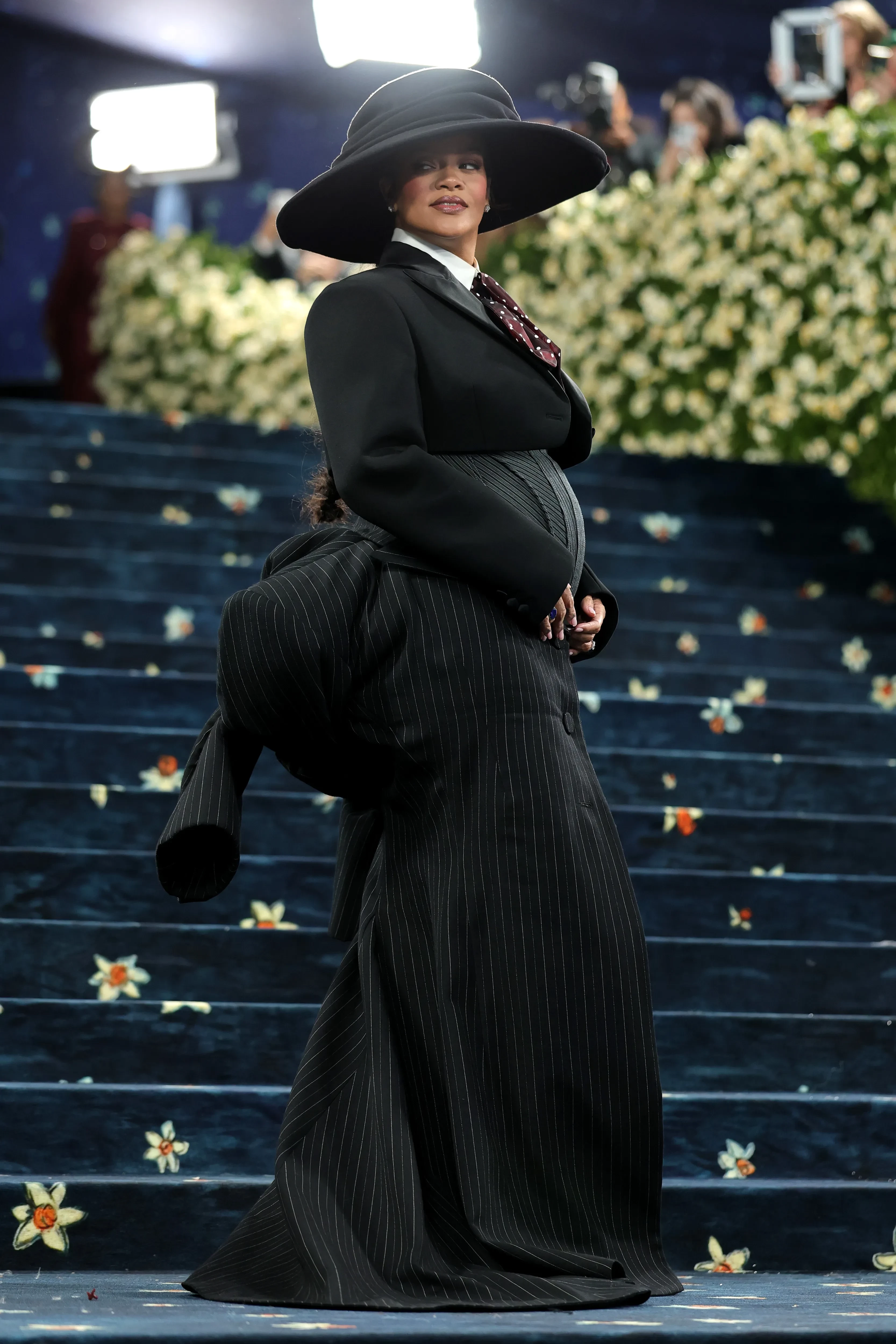 Причиной стал комментарий 37-летней певицы, который она дала репортёру тикток аккаунта "Access Hollywood" на красной дорожке главного модного события года. Журналист спросил у Рианны, взяла ли она с собой зонт, намекая на хит "Umbrella", на что она ответила: "Его принёс Рокки (A$AP Rocky). Я привела с собой ребёнка", указывая на свой округлившийся живот.