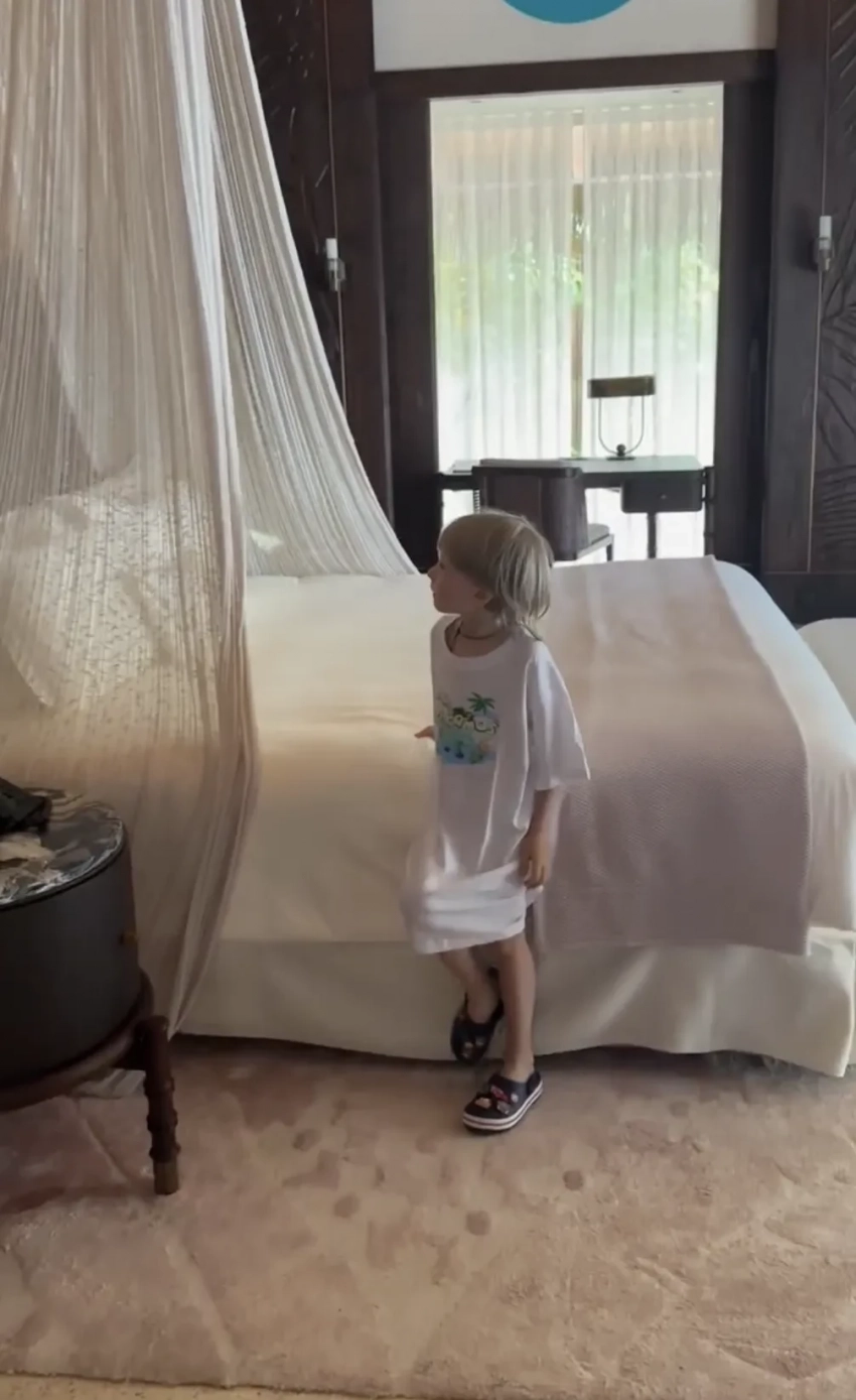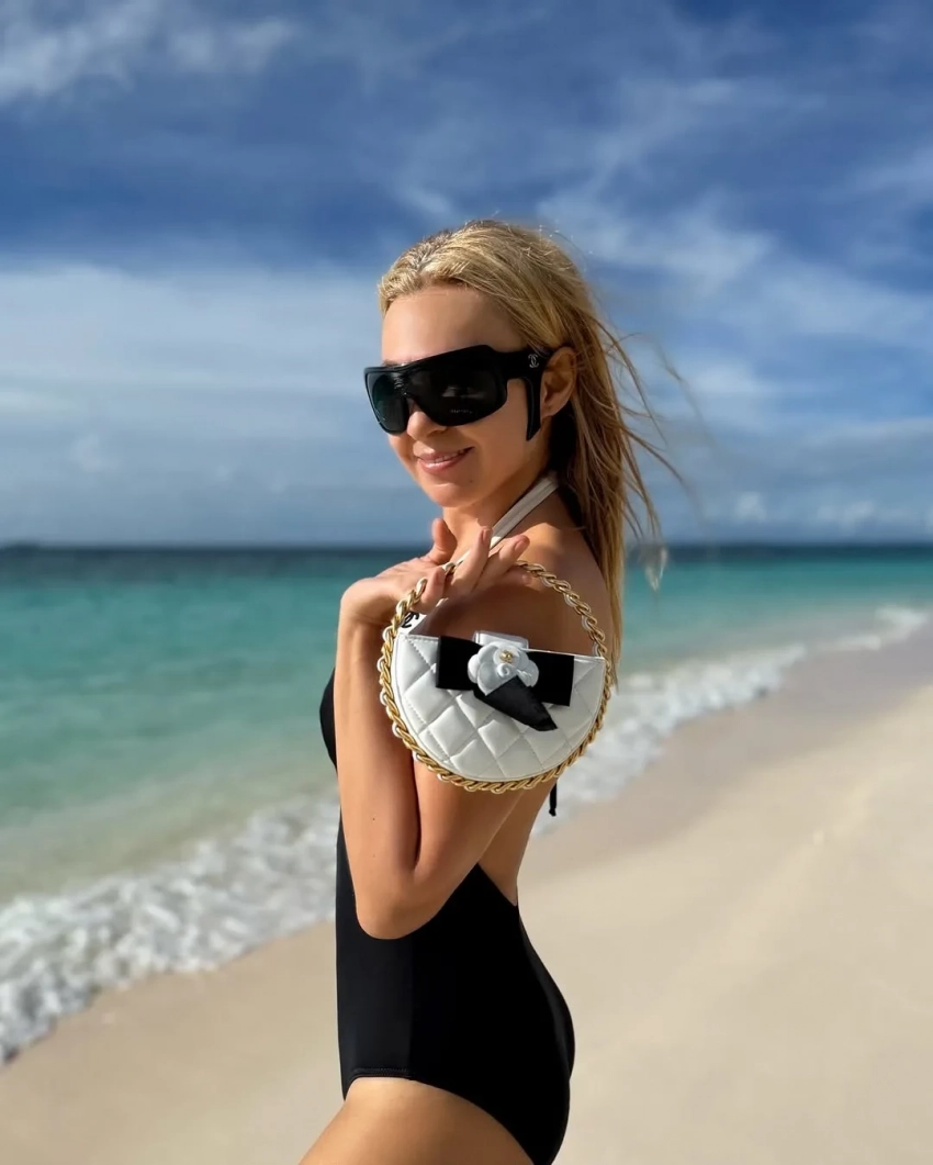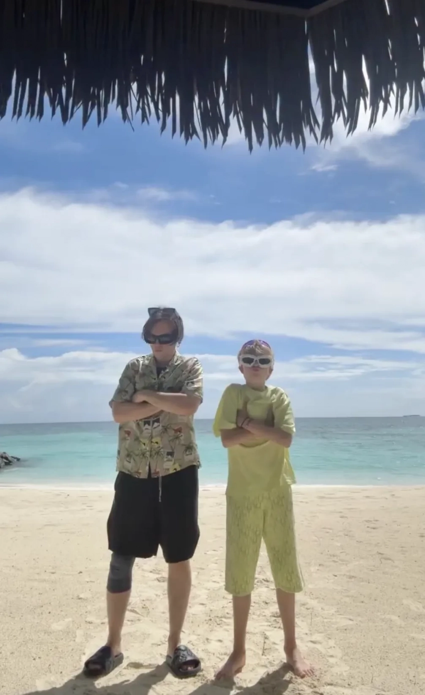 На снимках 50-летняя Рудковская позирует на пляже в тотал-луке Chanel: в чёрном купальнике, дополнив образ сумкой и очками, а младший сын пары Арсений проводит подписчикам Яны рум-тур по своей вилле (его звёздные родители поселились по соседству). Тем временем их старший сын Александр (Гном Гномыч) танцует на фоне океана вместе с 22-летним братом Николаем.