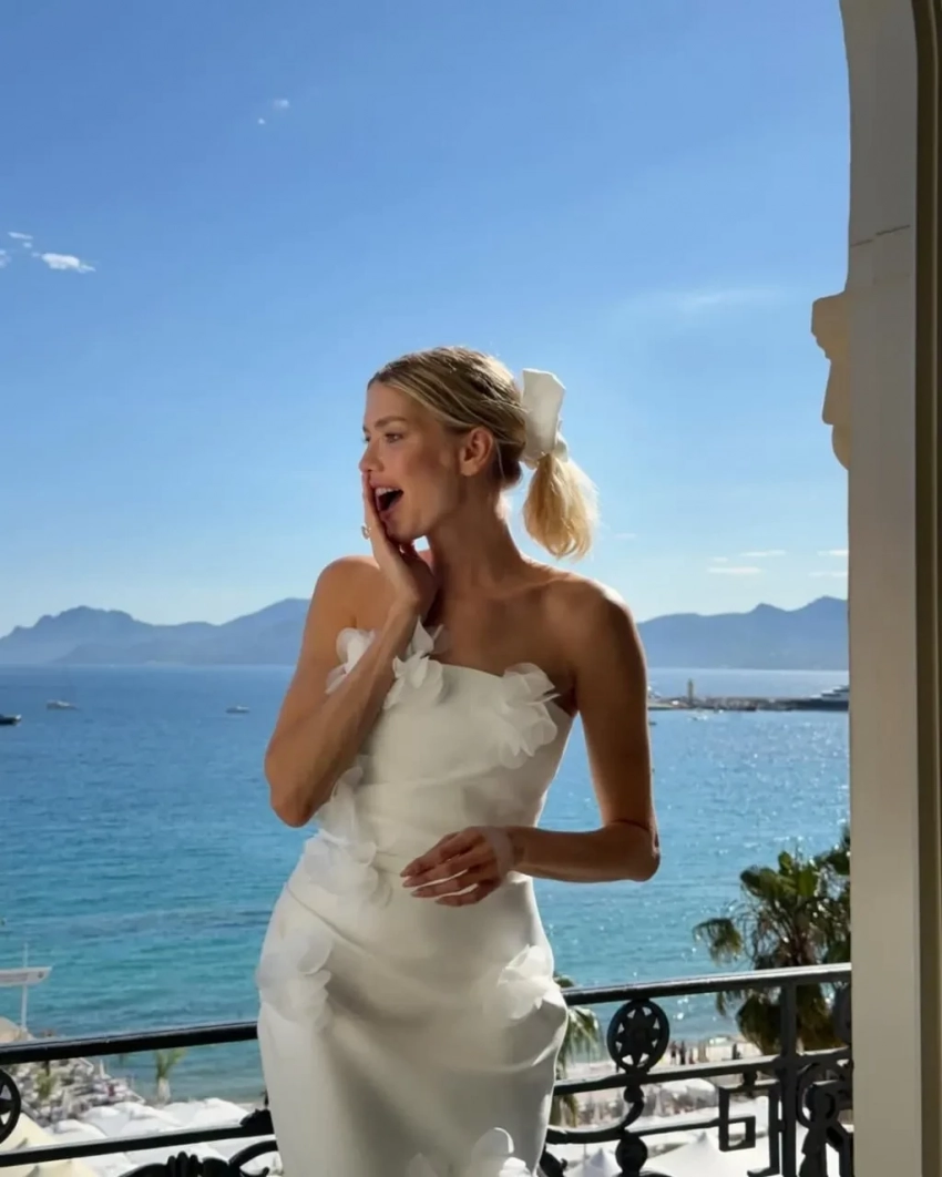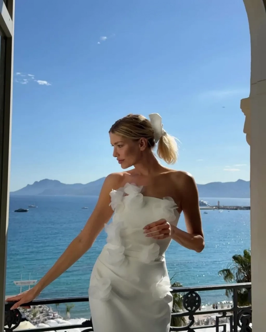 "Ощущая себя невероятно красивой в нём", — прокомментировала образ 38-летняя Перминова. Судя по интерьеру и виду за окном, фотосессия была сделана в Каннах, куда модель прилетала на 78-й международный кинофестиваль со своим бойфрендом, манекенщиком Тарасом Романовым.