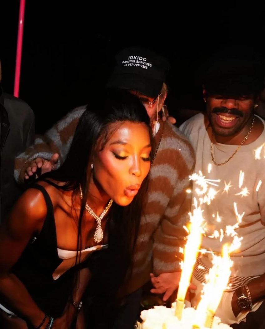 Судя по фото, у Кэмпбелл было две вечеринки. На одной она появилась бирюзовом платье Dolce & Gabbana, среди гостей были София Вергара, Эдриан Броуди и сын Арнольда Шварценеггера — звезда "Белого лотоса" Патрик Шварценеггер. Рядом с именинницей также находился мультимиллионер из Саудовской Аравии Мохаммед Аль Турки, с которым ей приписывают отношения. Торт для Наоми украсила её культовая фотография для Interview Magazine 1991 года.