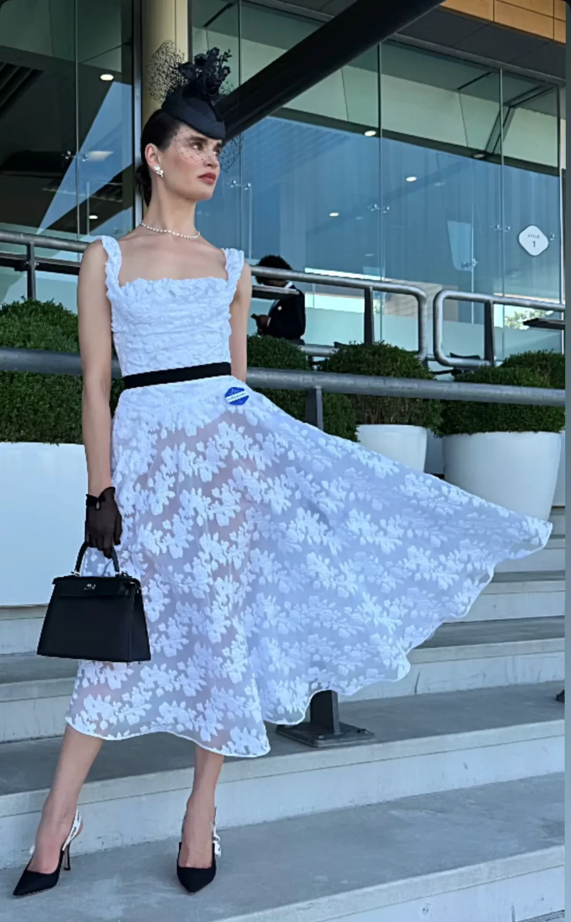 На снимках Татьяна, которая воспитывает четверых детей от водочного магната, купившего долю Анджелины Джоли в её с Брэдом Питтом поместье Château Miraval, позирует в белом кружевном платье, туфлях Dior и с сумкой Hermes. Модель дополнила образ чёрными перчатками, шляпой с вуалью и ювелирными украшениями.
